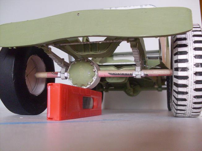 Salut Jeanma. Pas de vacances pour l'instant, à l'abri de la chaleur j'avance le modèle avec le pont arrière, lequel désormais roule :