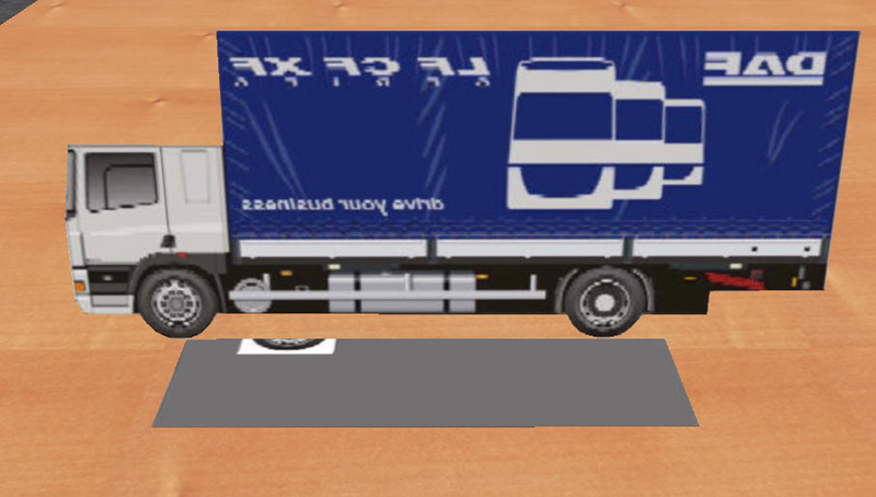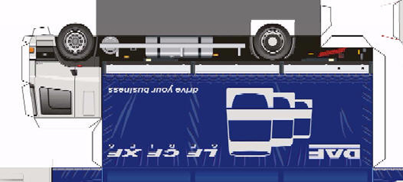 Choisir un PDF de modéle à découper (libre de droits), ce sera un camoin porteur DAF et sa remorque
