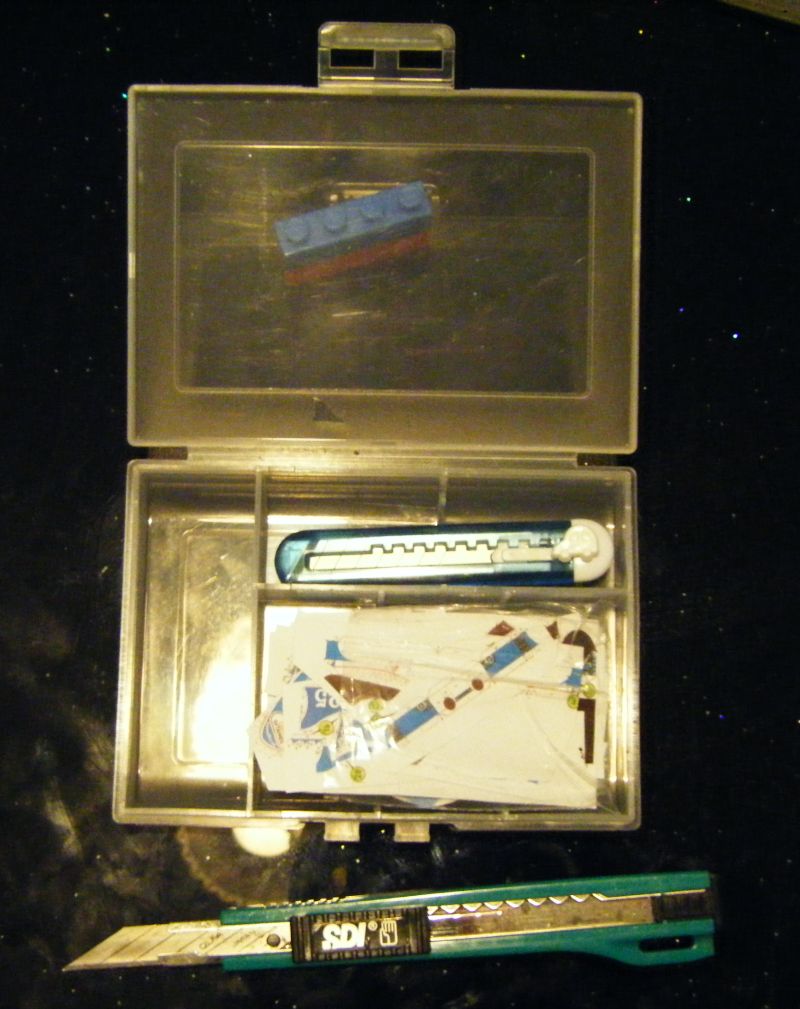 D'abord, ma derniere acquisition, un cutter de 8 cm de long qui rentre super dans ma boite de decoupage 'mobile'