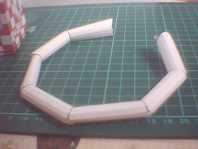 la suite voici toutes les partie du corpsune dernière vue du corps avant l'assemblage.la pose des braset pose de l'anneau, pour l'anneau j'ai tendu les fil et les est scotcher ensemble pour bien centrer l'anneau par rapport au corps(mais la j'ai eu la main lorde sur le scotch