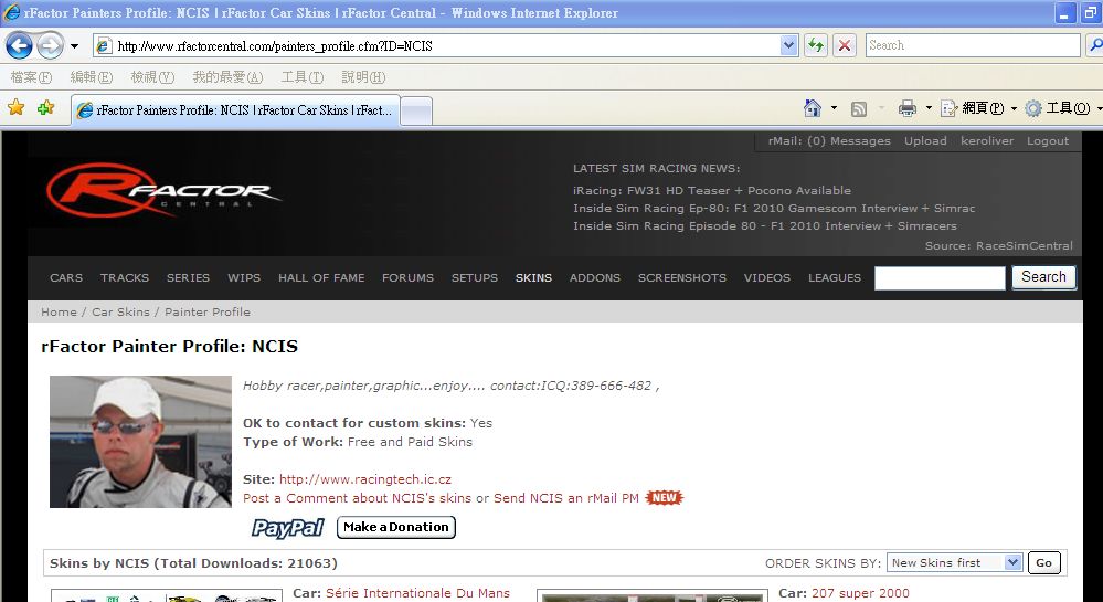 Si j'en crois NCIS, createur de skins rFactor,