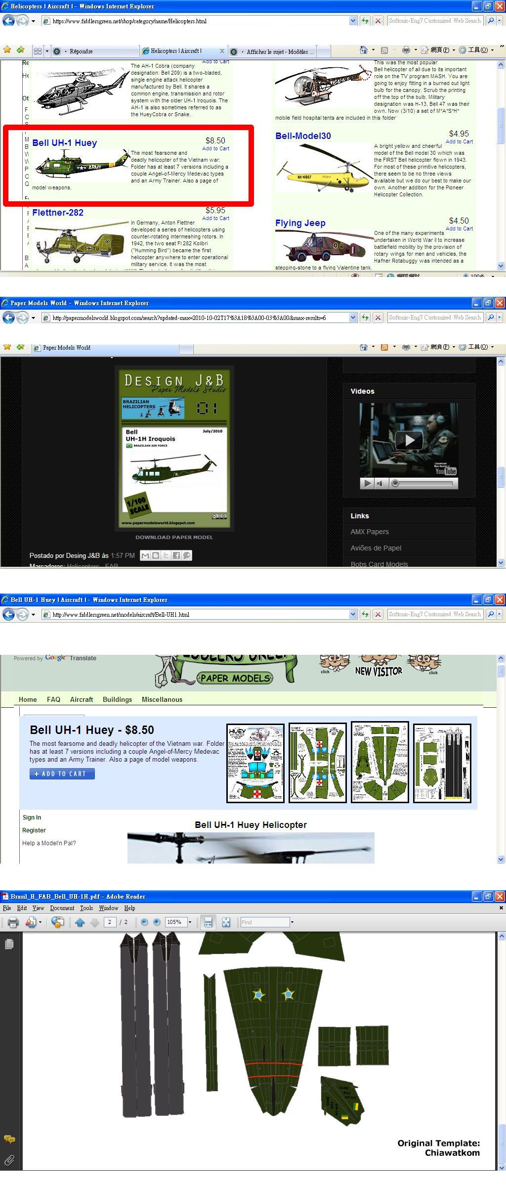 Chiawatkom est apparemment (je n'ai ni la force ni la patience de rechercher la veracite de ces creations) un thailandais qui creee des modeles d'avions en papier qui sont ensuite repris et recolories par Design JB.