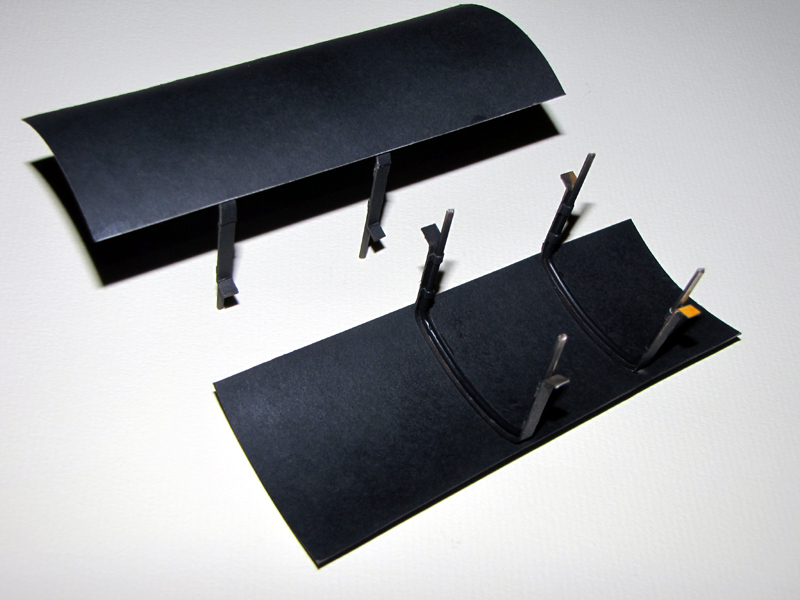 voici les "lanternes" assemblées et leurs supports, le tout prêt à être posé sur la loco :