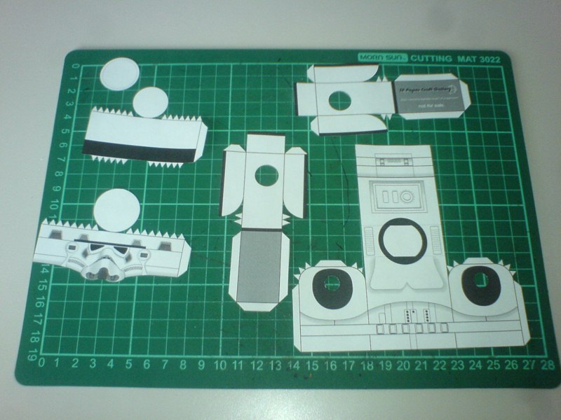 1er jour, impression et découpage des pièces: 2ème jour, pliage de plusieurs pièces et collage du premier bras: