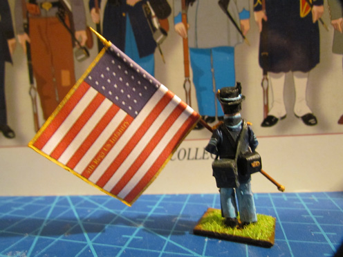 J'ai un peu travaillé, pas beaucoup. Je viens de monter le drapeau. Il me reste à porter quelques améliorations puis à assembler les bras de ce sous-officier porte drapeau du 4ème régiment d'infanterie nordiste.