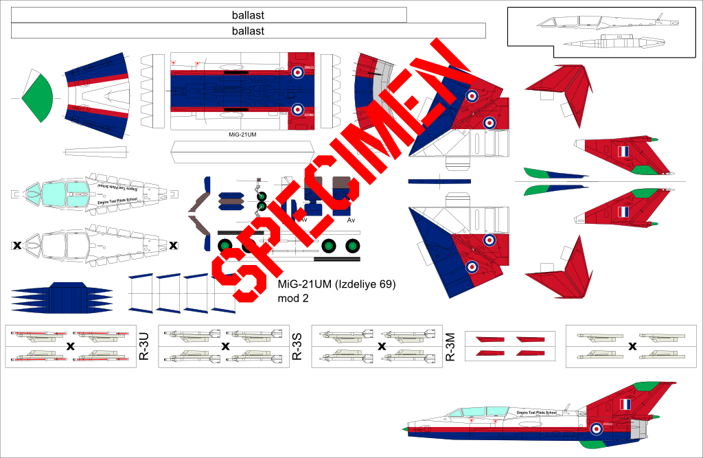Pour le MiG-21 british, l'inspiration vient de whatifmodelers.com et d'un profil de MiG-21Bis ou MF fait par Jennings sur lequel je n'ai pas réussi à remettre la main. Un autre membre de ce forum a monté une maquette avec une déco assez proche.