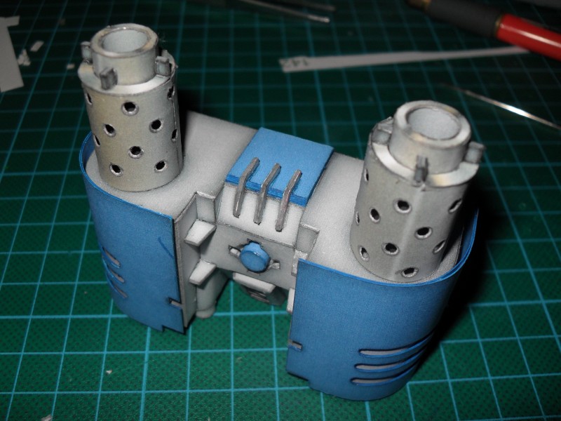 Mise en place des flexibles. J'ai utilisé des pailles plastiques puisque je n'ai pas trouvé de solution pour les faire en papier... Un petit coup de peinture noire ensuite et il n'y paraitra plus.