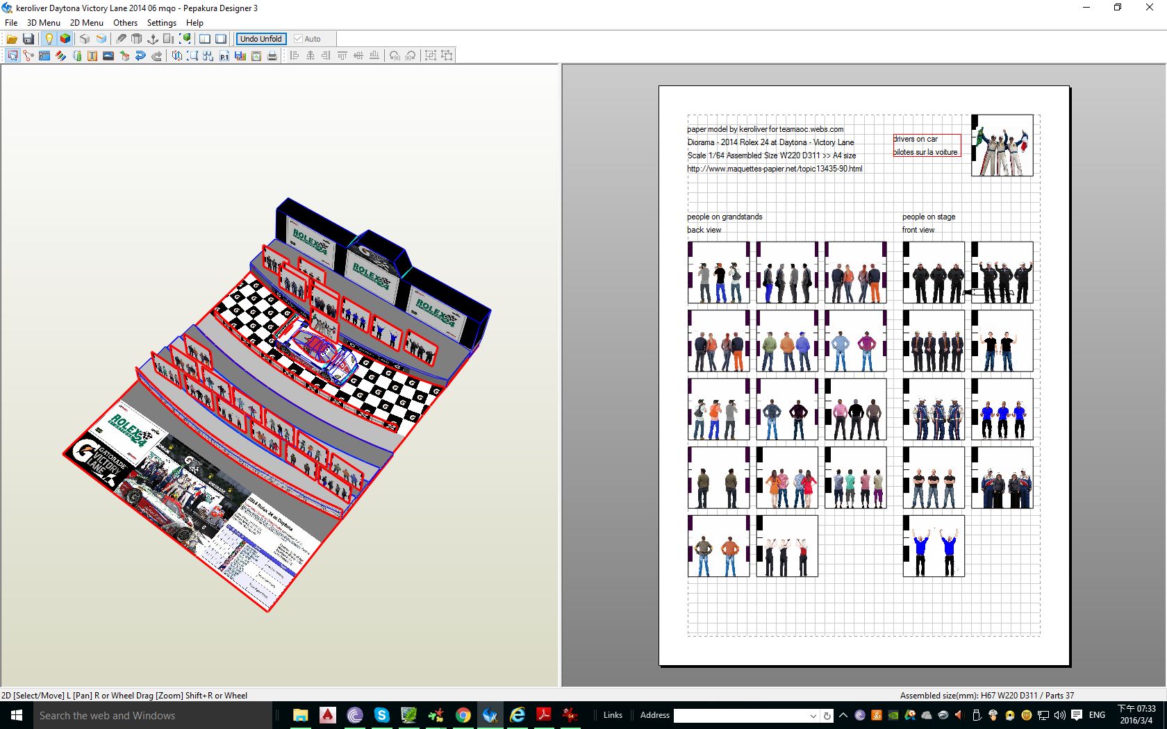 Je viens de voir que... les mecanos du diorama precedent 'diorama Team Peugeot at Le Mans 24 Hours 2007' vont tres bien sur le podium du diorama 'Diorama - '2014 Rolex 24 at Daytona - Victory Lane'. A vous de dessiner une petite veste noire et vous voila avec des officiels du circuit Daytona.