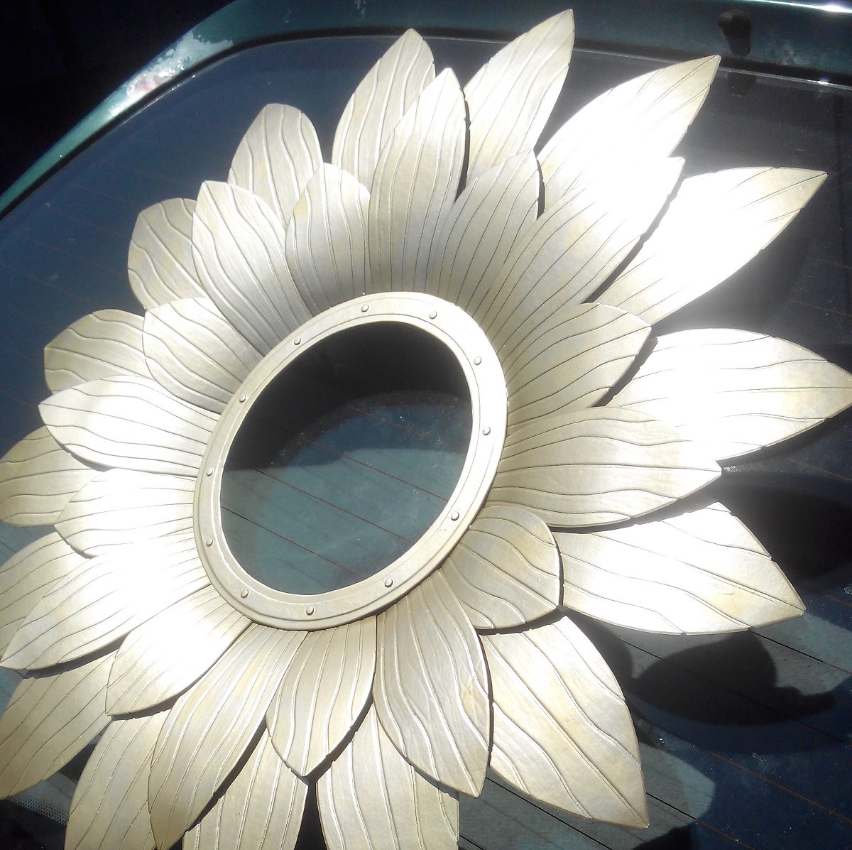 Salut les amis! Je suis de nouveau de retour!. Aujourd'hui, je vais vous présenter un miroir en forme de soleil ou de fleur. Fabriqué en carton. Puis peint. Bon visionnement!