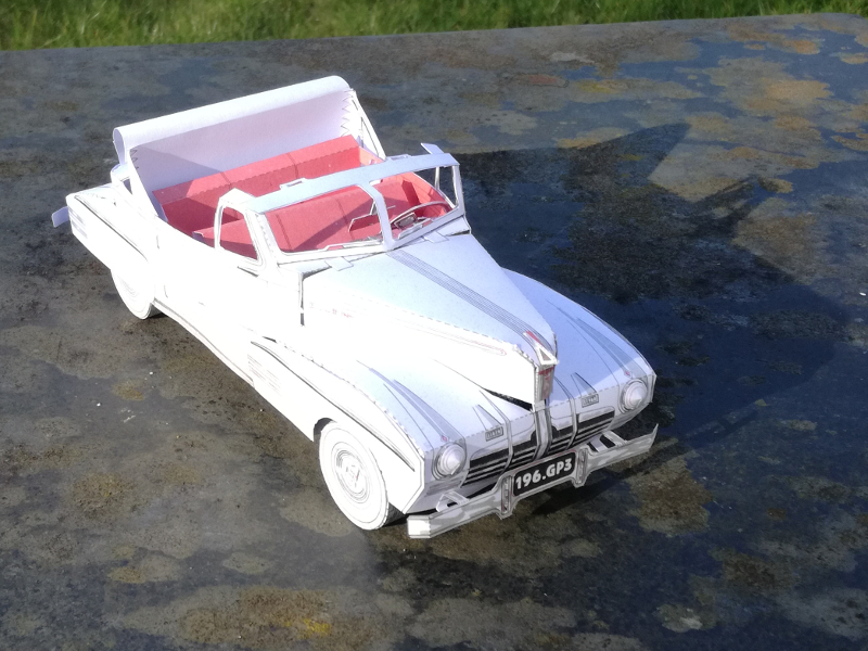 En triant mes modèles, je me suis rendu compte que je ne vous avais jamais présenté mon cabriolet Ellen, qui est pourtant une des premières maquettes que j'avais réalisé ! Il s'agit d'un scan d'un vieux modèle, très intéressant dans son montage et ses animations, mais que je ne trouve pas personnellement très esthétique (en plus d'être moyennement bien monté...je pense que le papier très différent de celui du modèle d'origine y est pour qqch...)