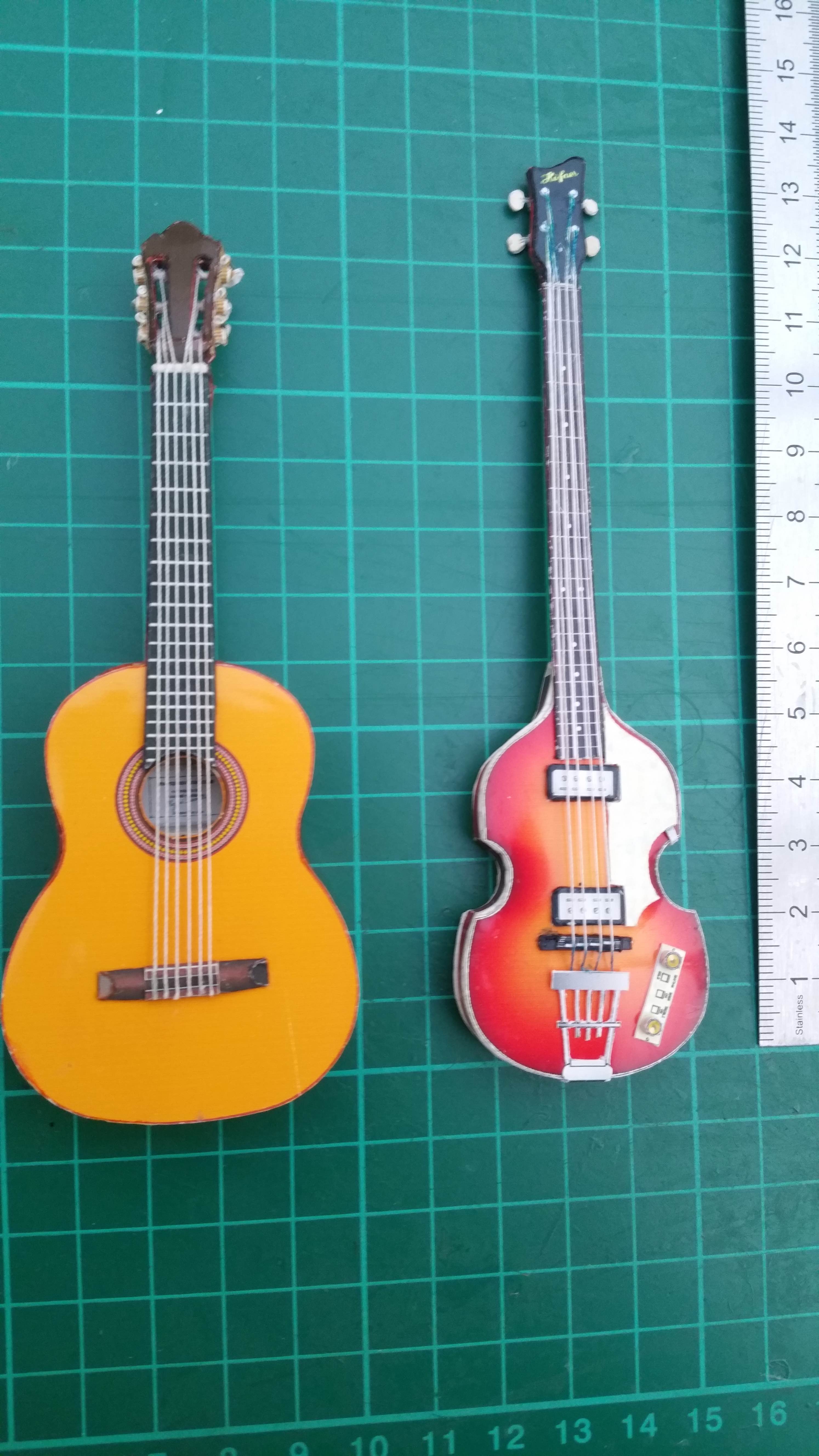 Une basse Hofner qui se trouve sur paperguitar, je l'ai réduite au 1/8 pour qu 'elle soit à l'échelle de la batterie de chez Canon que j'ai l'intention de faire quand j aurais plus d'expérience