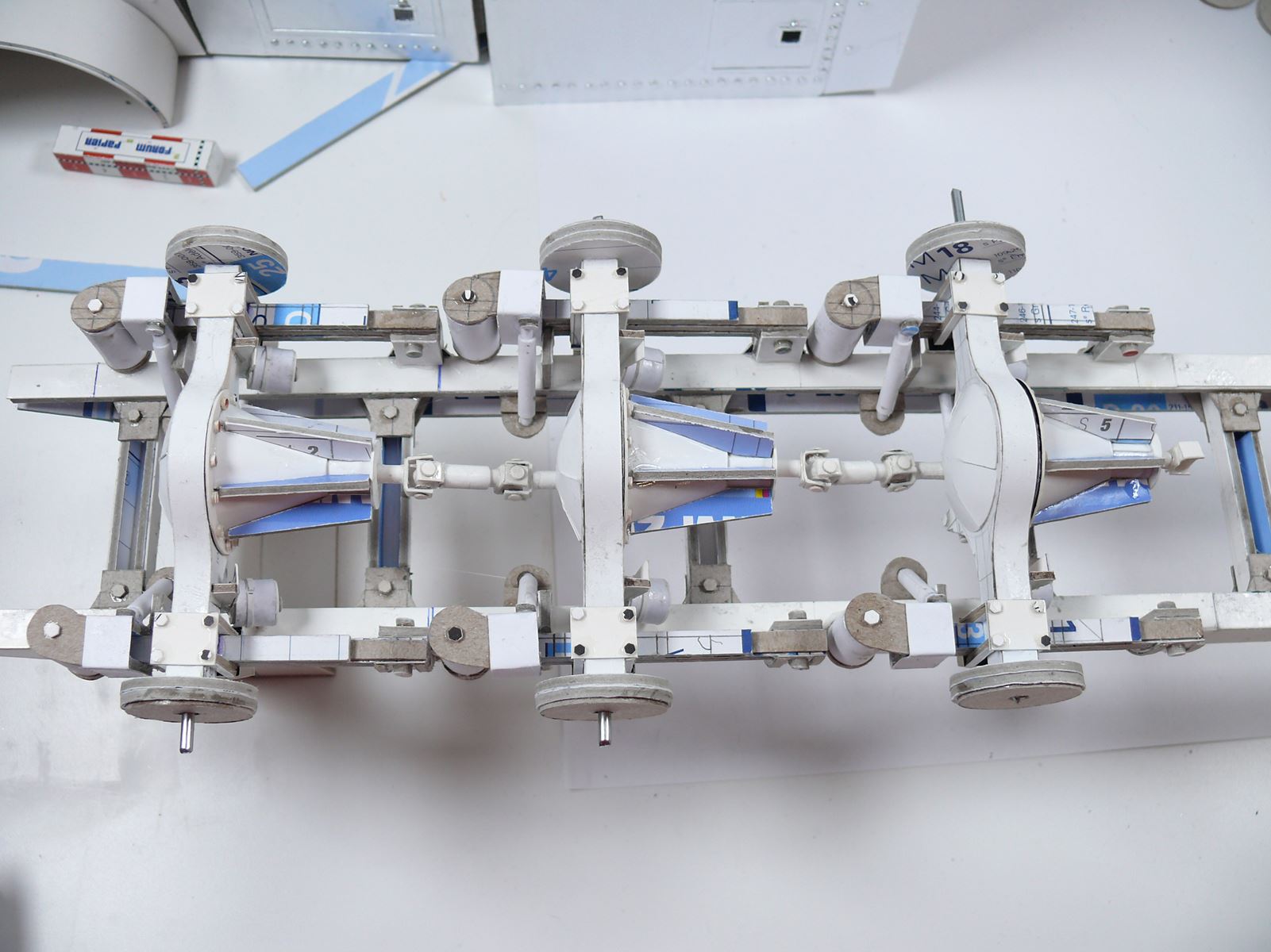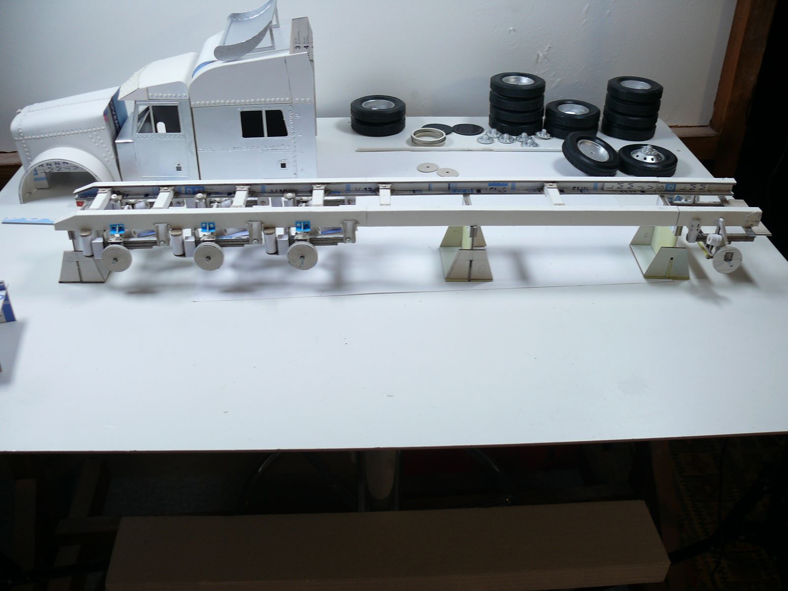 J'ai terminé l'essieu avant et peint les roues (les moyeux ne sont pas présents, ils seront collés en dernier). Débute maintenant la construction des essieux arrière.