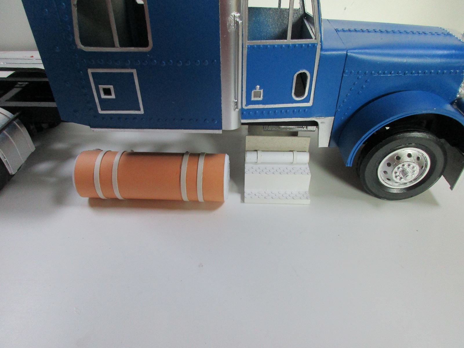 La construction s'est poursuivie par la peinture de la carrosserie, la fabrication des garde-boue arrière et la fabrication et la pose des sorties d'échappement : Puis, du raccord des sorties d'échappement qui se trouvera sous le châssis du camion :