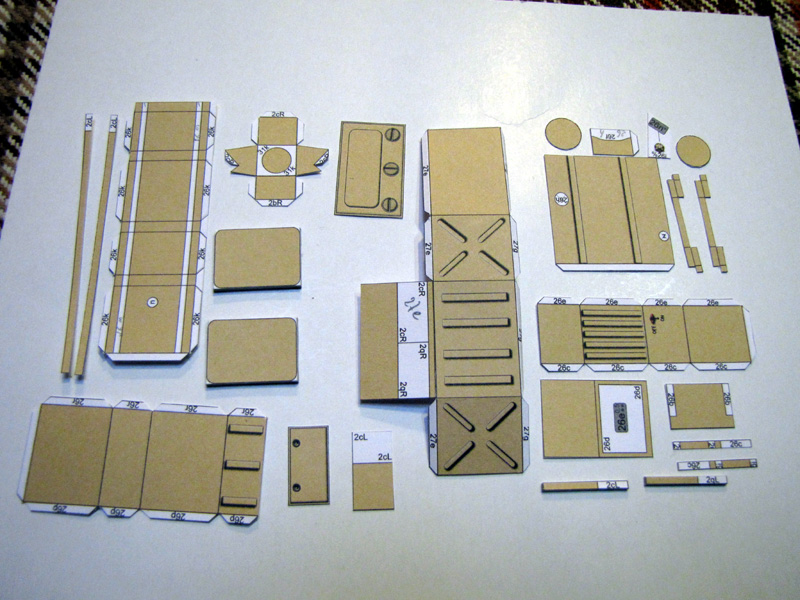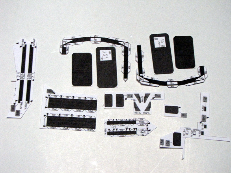 de gauche à droite, parties ar des flancs, parties av des flancs, portes des flancs ( différents stades de découpe).