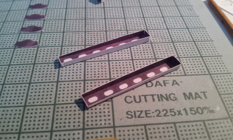 Dans un premier temps confection des 2 supports des pipes d'echappements, qui apres collage, donneront un peu de tenu au capot inferieur