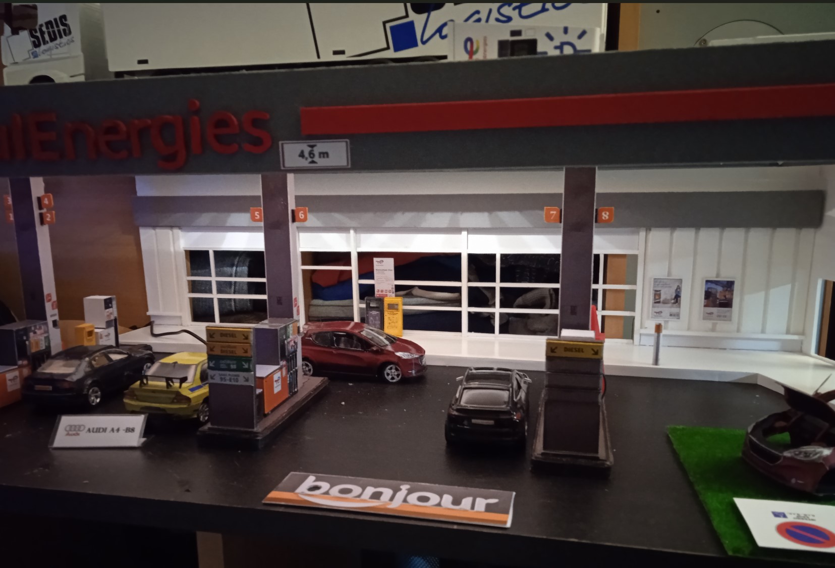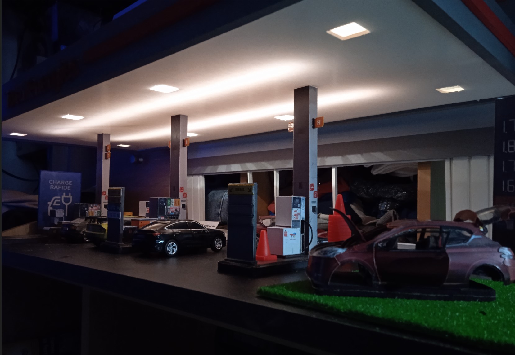 Toute la devanture faite , de la boutique à la station électrique.
