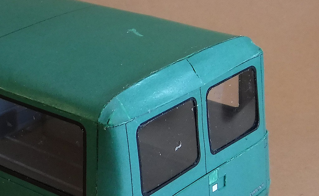 J'arrondis bien le segment avant du toit, je colle la fente…