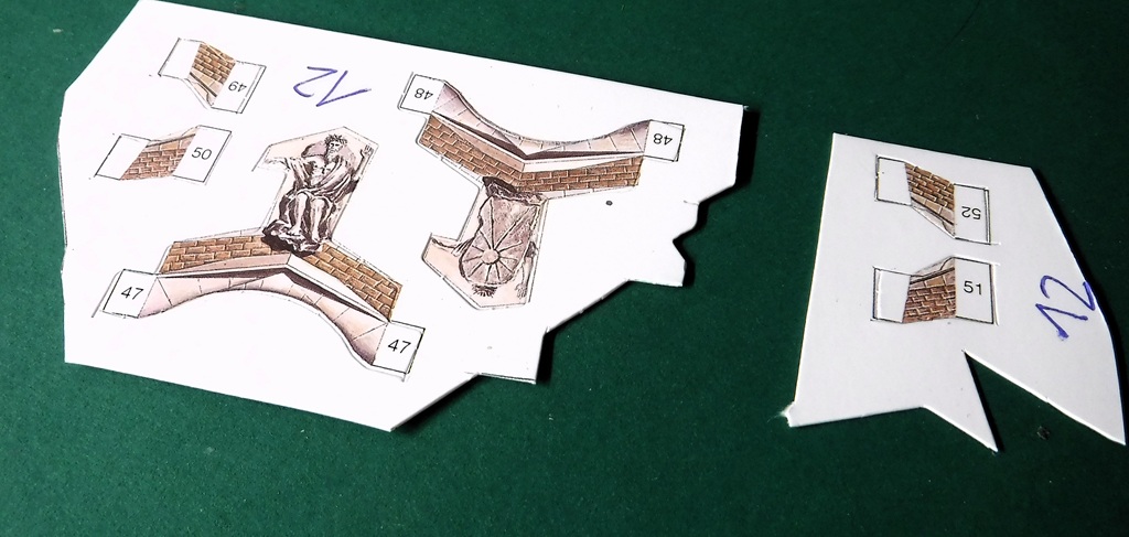 - … quatre fois la pièce 53, collez les languettes coupées…
