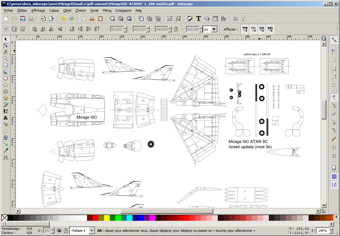 Honêtement, ça m'inquiète pour les futurs Mirage III/5 coloriés. Le pdf original contenait 4 kits (j'ai 3 autres M2K quelque part dans une chemise) et faisait 9,3 Mo!!!