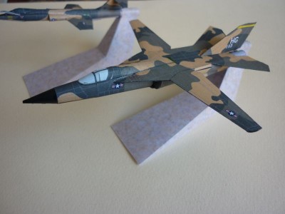 Je pense que le modèle a été conçu sur la base du plan du F-111E dispo sur le site de Richard Ferrière. Mon exemplaire est aux couleurs d'un F-111A du 429th TFS/474th TFW déployé en Thaïlande en 1972.