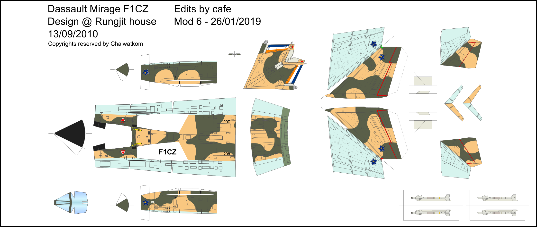 Et puis aussi le Cheetah E. Pas testé non plus. Les cloisons d'ailes (sous le nez sur le pdf) ne sont peut-être pas bonnes. Le reste du modèle ne doit pas présenter de surprises car ce sont globalement les mêmes pièces que sur les Mirage 5COAM colombiens.