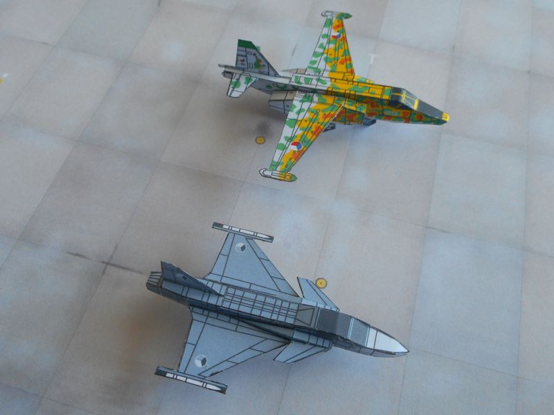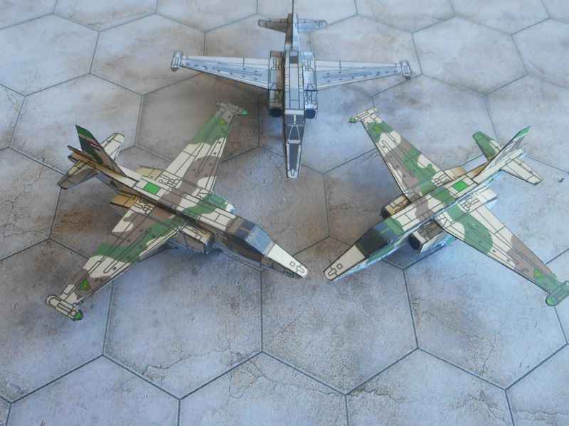 Et un irakien aussi. Deux version du même en fait vu que mes plans 3 vues étaient contradictoires. Le vert et le brun sont inversés sur le deuxème mais le numéro de série reste le même. Petite erreur de camo sur l'entrée d'air gauche.