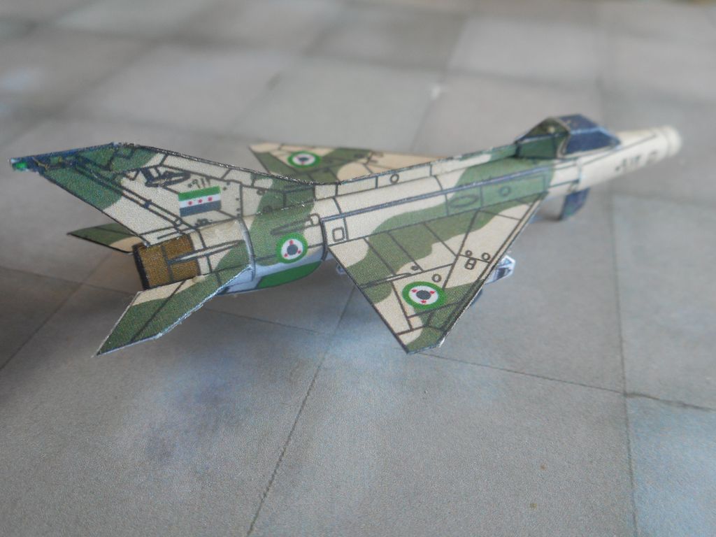 Une seule erreur de camo (côté droit de l'épine dorsale). La section centrale de fuselage est raccourcie à l'avant. Un nouveau cône de nez plus long et à l'entrée d'air plus étroite remplace le précédent (non ce n'est pas celui de mes FT-7, MiG-21U/US/UM et MiG-21F-13). Je dois revoir le cône radar car son positionnement est acrobatique. La jonction dérive/fuselage doit être améliorée mais je voulais pas ajouter de pattes de collage.