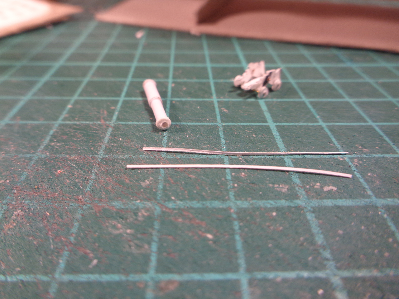 Voici la hune avec les petites barres coupées et un tour ajouté. C'est une bande de un millimètre de large environ. Il y aura d'autres renforts à ajouter.