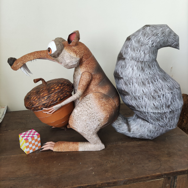 Une nouvelle maquette finie que je suis très heureux de pouvoir vous présenter. Elle m'aura occupé pas mal de temps... Vous en connaissez déjà les étapes de construction pour ceux qui suivent le forum, voila scrat, enfin ! Il parait très grand...et il l'est en réalité avec 40 cm de haut et environ 60 cm de long !