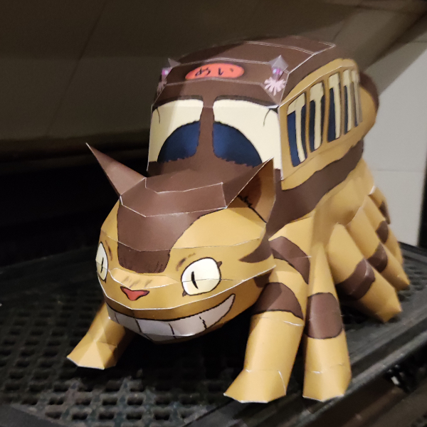 J'ai reçu quelques pressions extérieures pour finir ma nouvelle maquette... La voila, les fans de Miyazaki reconnaitront le Chat-bus présent dans "mon voisin totoro". La tête et le corps n'ont posé aucune difficulté particulière, mais les pattes et surtout la fermeture du ventre ont été une bonne prise de tête !