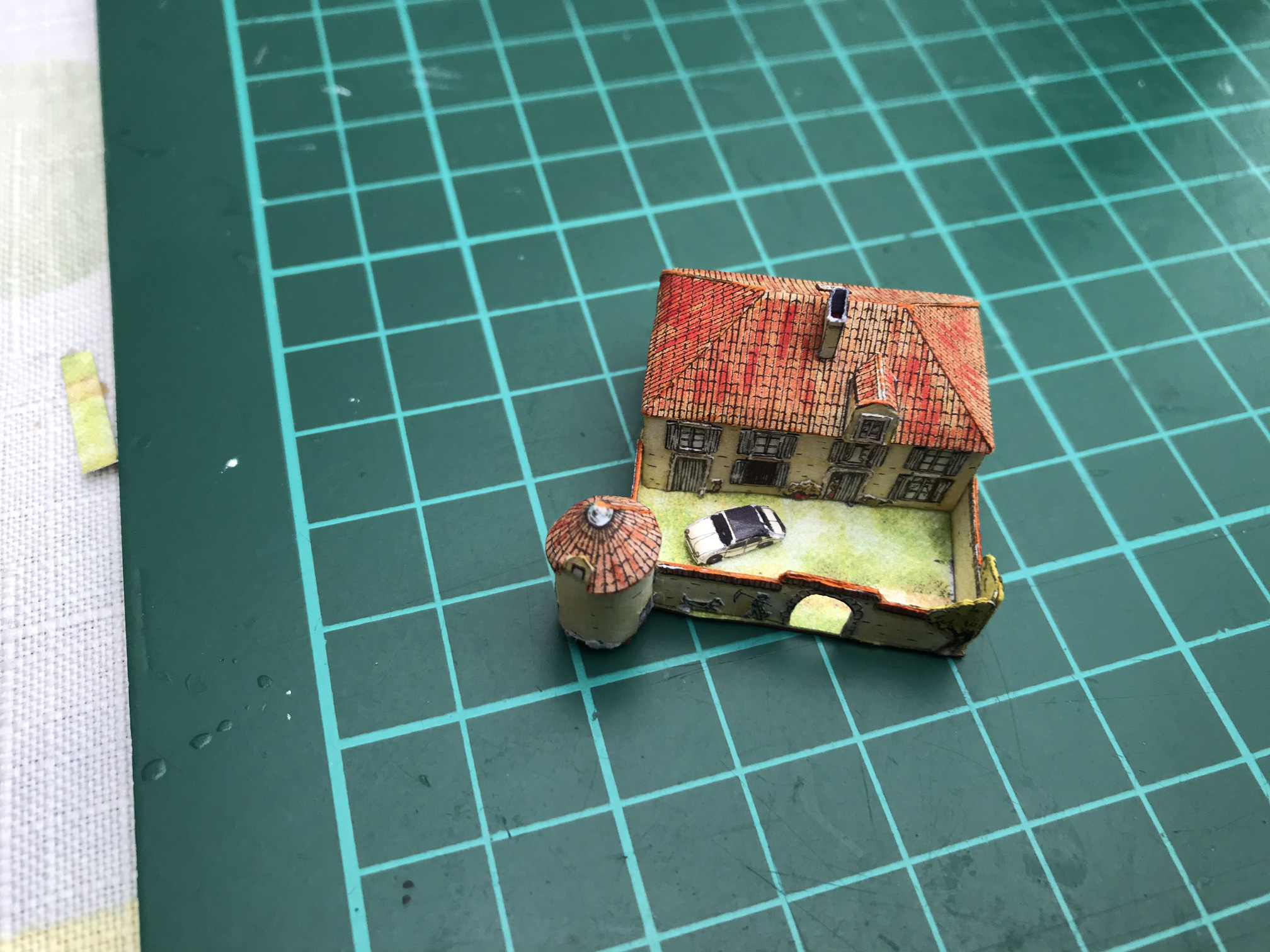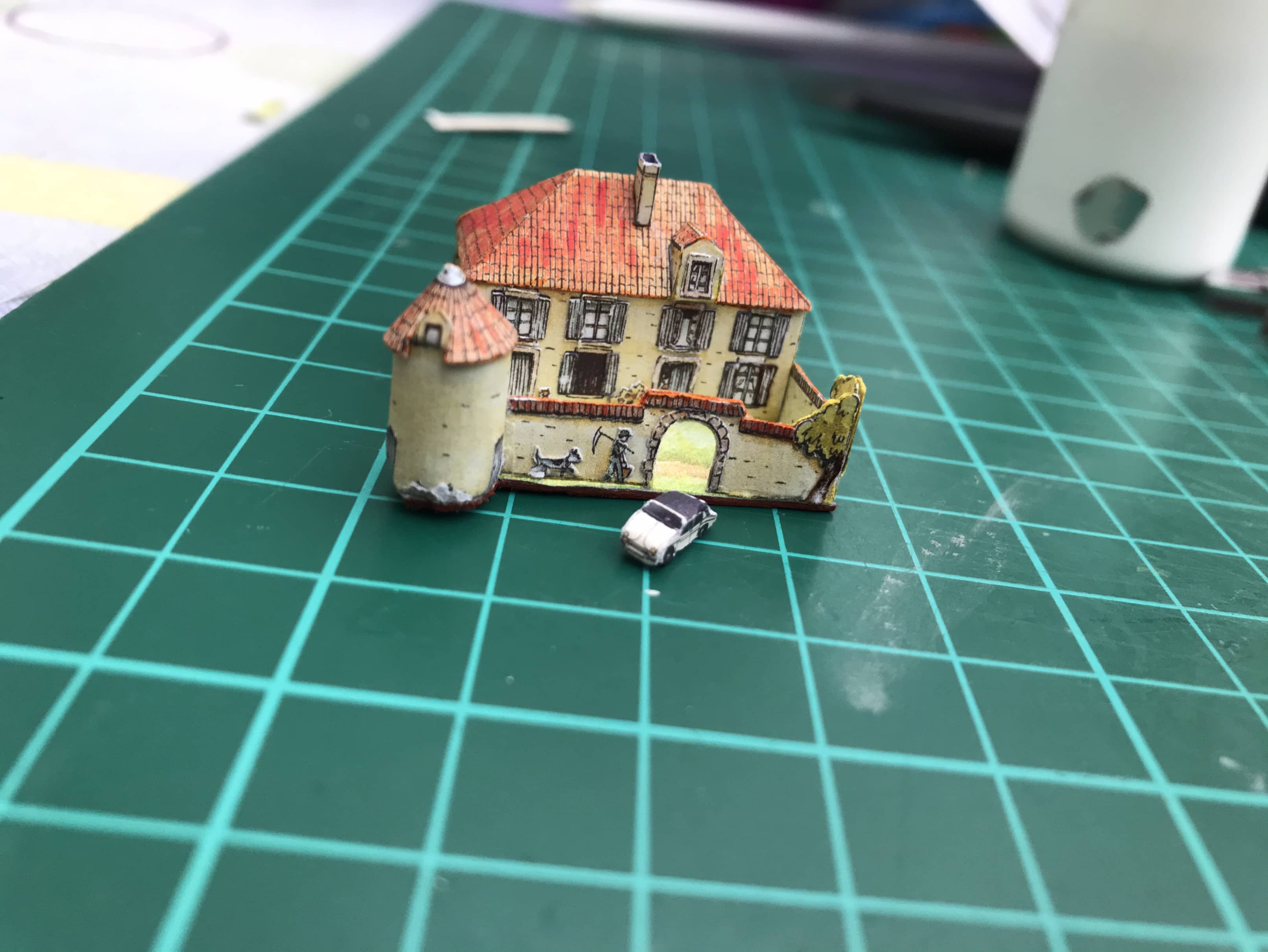 J ai essayé de donner un peu de relief à la maison en découpant les décors et les coller. Je sais pas si,c est très bien reussi mais ça me plait bien