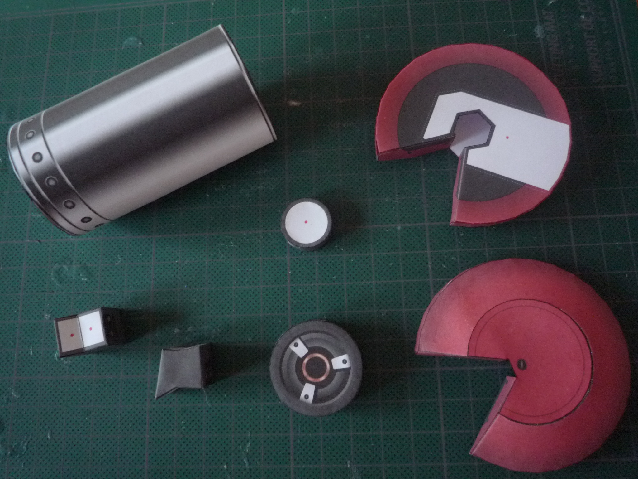 Le tout est relié par les premières pièces en couleur du bras. A signaler que j'ai également pris la pièce rouge initialement prévue pour le bras droit pour pemettre plus tard la fixation sur le bas de la pièce :