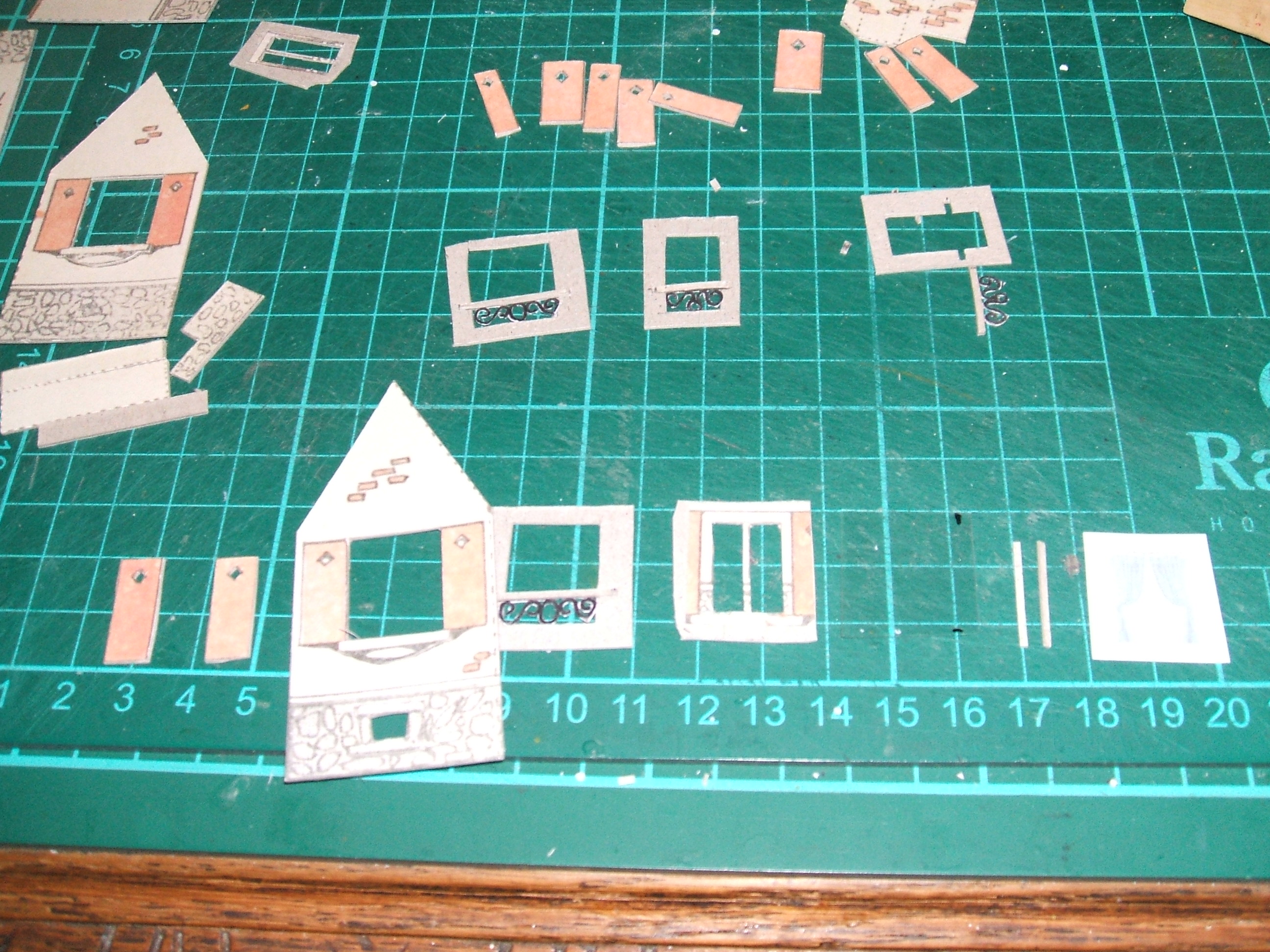 Voici le début de l'épreuve et presque la finJ'ai découpé un encadrement de fenêtre dans lequel les décors sont encastrés. On le collera en premier contre l'intérieur du mur de la maison. Il y a une photo de l'empilage des couches un peu plus loin.