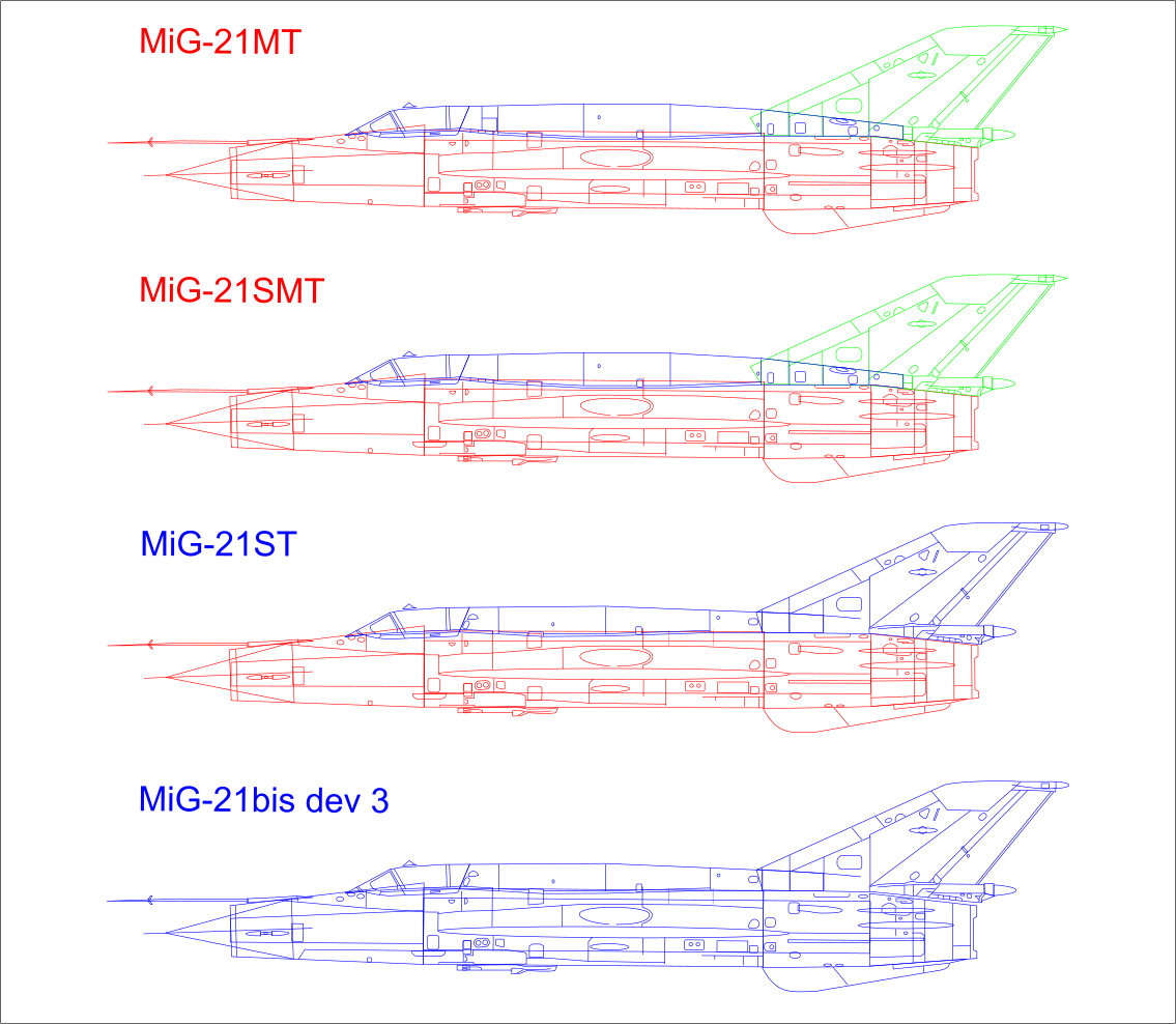 Les nouveautés du MiG-21R ont ensuite été transférés sur le PFM qui est devenu MiG-21S (izdeliye 95) :