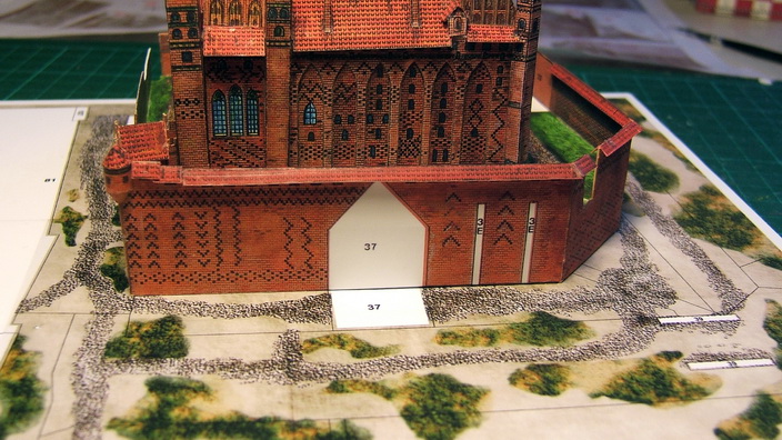 En fait j'ai réduit l'original dont le socle mesure 50cm x 35 cm pour que l'ensemble tienne sur un 21x29,7 d'ou cette échelle un peu batarde. le livret, de bonne facture est constitué de 2 pages de notice (en polonais), de 11 pages de photos des étapes d'assemblage (avec le numéro de chaque pièces) et 13 pages de pièces.
