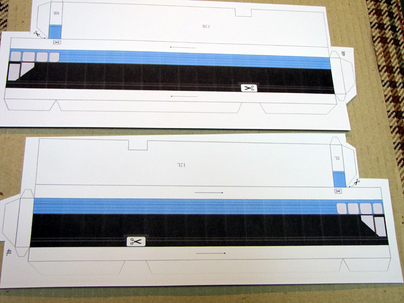 et les pièces pour les 2 passerelles de coupée ( aussi en carton découpé laser), pour chaque une 4 pièces à coller sur tranche .
