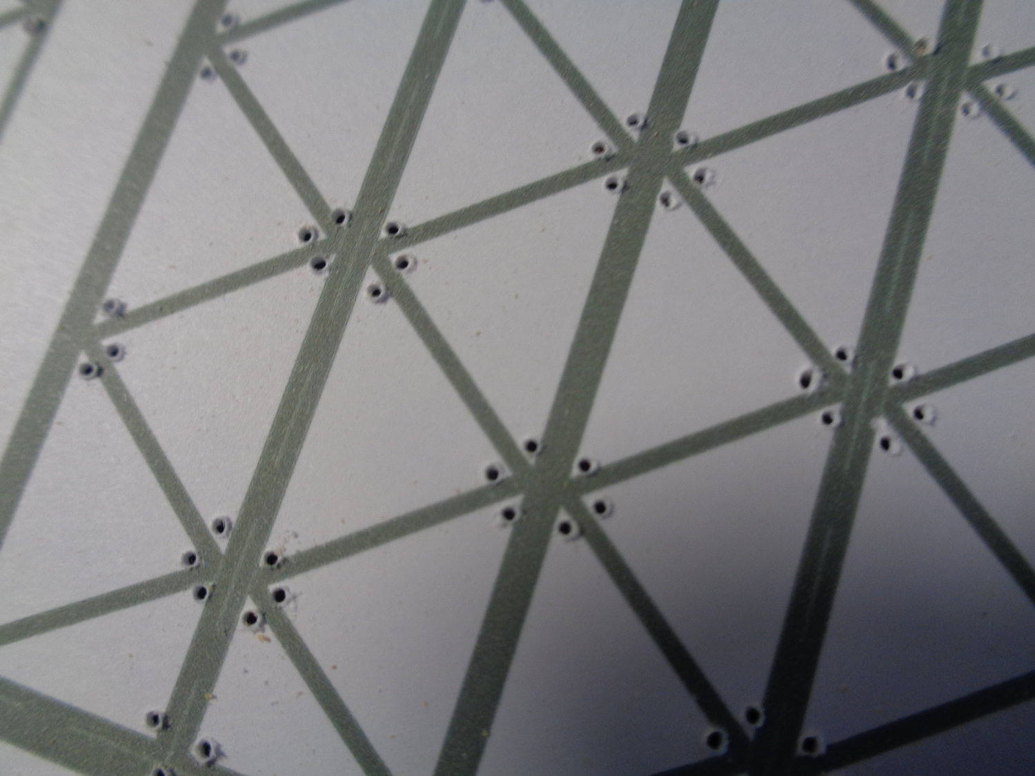 Les trois étages sont faits, les pièces carrées passent et peuvent se coller en place autour du treillis.