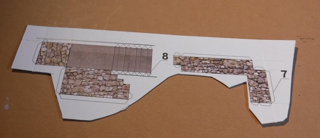 - Mur de créneaux 25, découper les pierres de couronnement, renforcer avec du carton de 1,3 mm et retirer les languettes adhésives des créneaux...