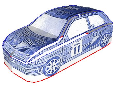 Une Renault 21 en noir et blanc... en attente d'une robe metallique grisee, d'un bandeau jaune et d'un gros numero 3 ou 21 dessus comme sur la photo numero 2... Avis aux dessinateurs, j'ai besoin d'aide pour cette 21, et aussi la Clio et la Delta S4.