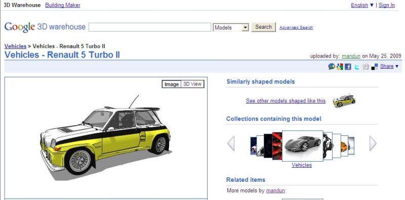 Pour aujourd'hui,une Renault 5 Turbo II realisee par mandun sur Google Sketchup