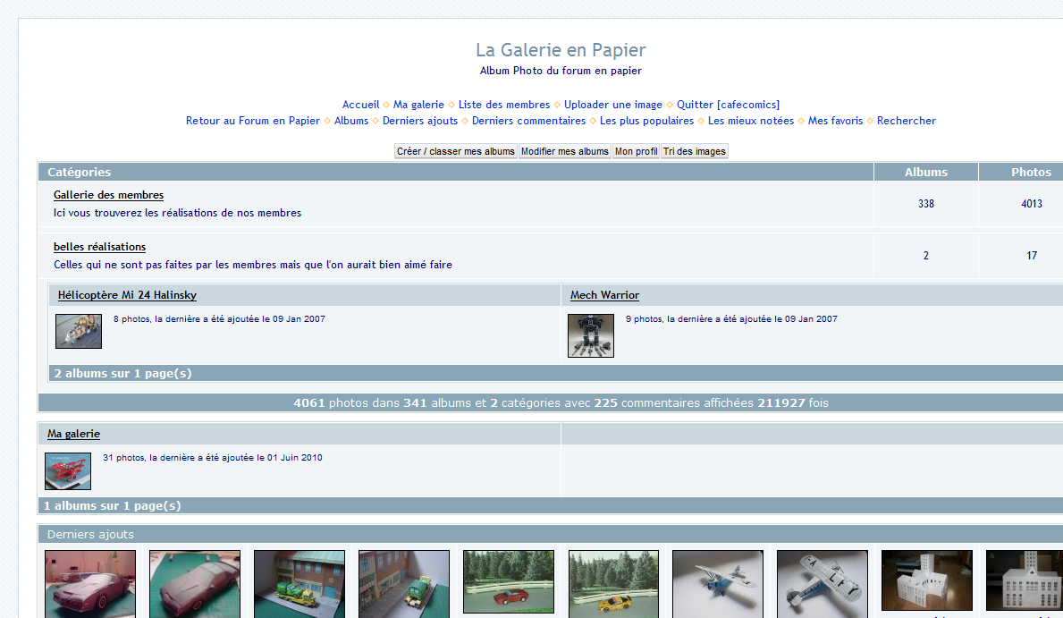 Cette section du forum sert donc a indiquer les mises a jour de son propre album photo, ou de présenter ses dernières créations sans forcement passer par l'album photos. Le montage des modèles présentés doit être terminé.