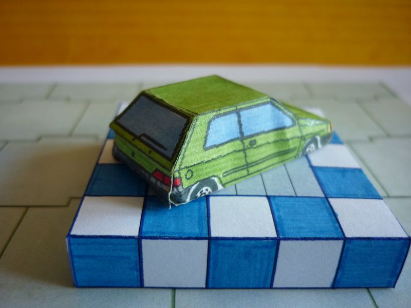 Ci-dessous, ma vieille Clio 5 portes du 28 février 90, faite à partir de photos volées d'un modèle de présérie parues dans l'Auto-Journal.