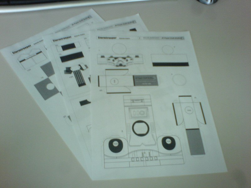 1er jour, impression et découpage des pièces: 2ème jour, pliage de plusieurs pièces et collage du premier bras: