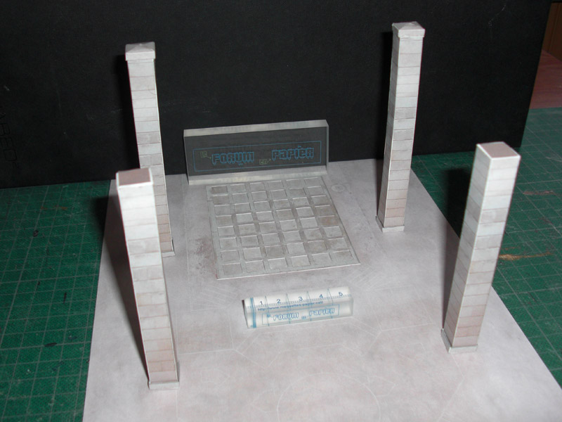 Comme d'habitude les pièces découpées et pliées. Montage du bassin et des paliers. Les escaliers montés. Plutôt difficile à cette échelle mais les pièces sont bien conçues. Le tout collé au Proscenium. Et une petite vue posée avec sol et quelques colonnes. Les colonnes n'étant pas les mêmes dans la zone du damier que celle avant, il faudra les refaire. Les autres ne sont pas perdues mais changeront de place au collage.