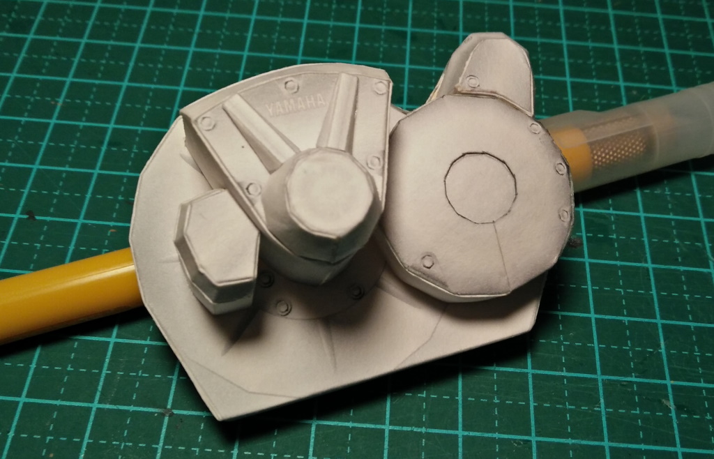 Imprimé sur le papier 180g, j’ai commencé assez classiquement, par le moteur… Son bloc, pour être précis : Jusqu’au la, tout va bien, mais bientôt on voit que me doit n’ont pas la même souplesse qu’avant : Et voici où je suis pour le moment : A suivre !