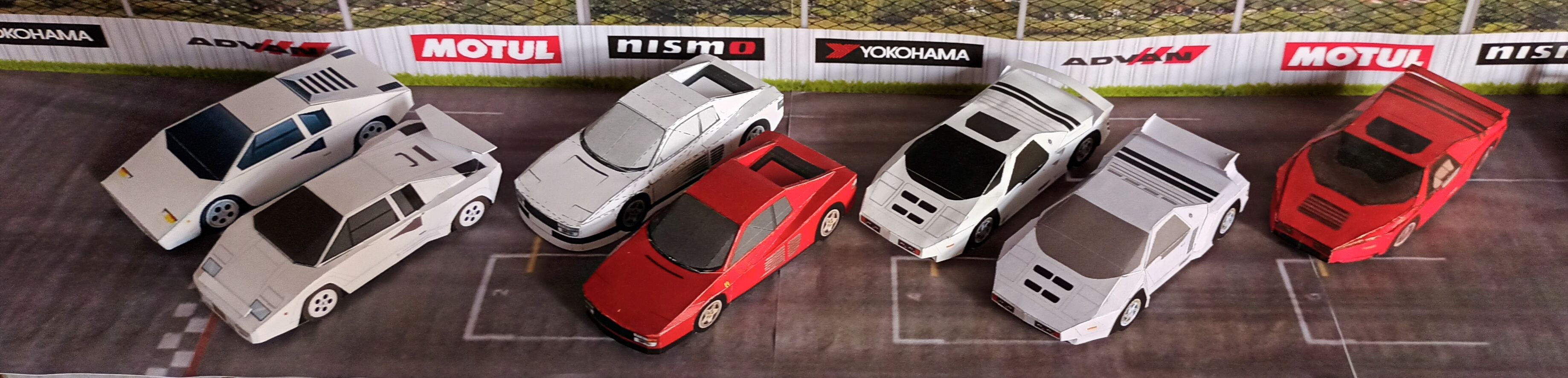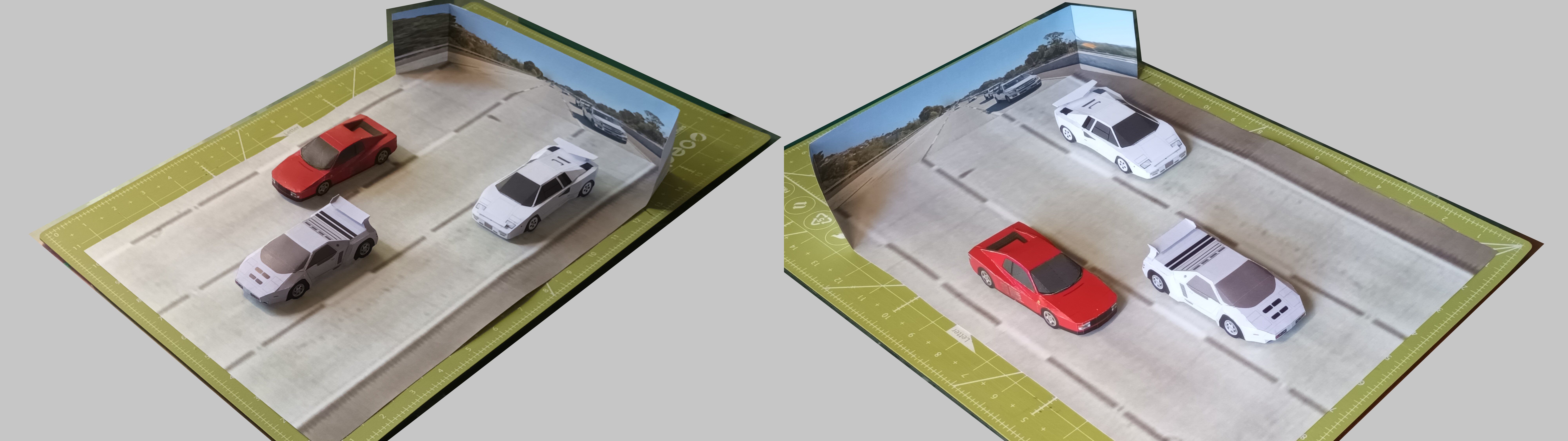 paper model by keroliver. diorama Vector Lamborghini Ferrari #1. scale 43. size: H57. W270. D375