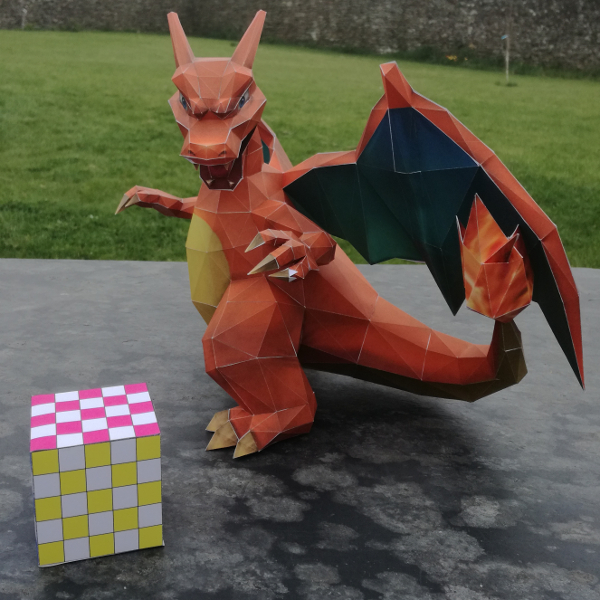 Et on continue les maquettes avec un dracaufeu assez sympathique à réaliser... Je me suis rendu compte sur la photo que l'une des griffes s'était décollé... C'est en réalité corrigé maintenant !