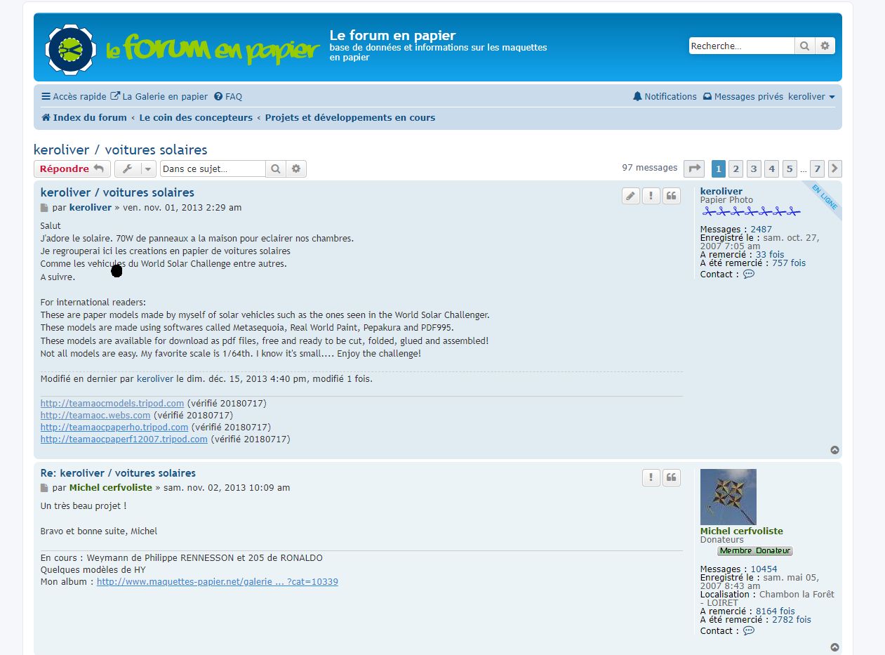 Depuis 2013, j'ai cree quelques modeles en papier de voitures solaires