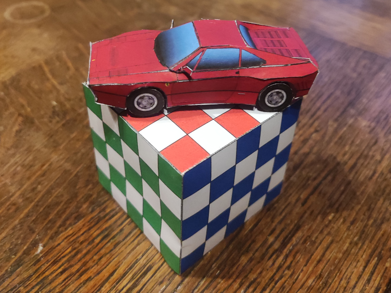 En déplacement familial pour Noel... ça veut dire quelques petites maquettes pour la route, faciles à transporter, sans nécessité d'ordinateur pour la notice... Au final trois petites voitures rejoignent ma collection, avec pour commencer une Ferrari 288 GTO, maquette de phh29 trouvée sur ce forum :