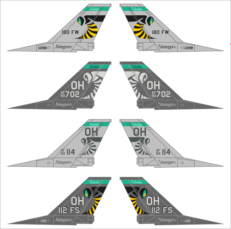 - 2 F-16C block 42 du 112 FS de la garde de l'Ohio (anniversaire et camo gris à la F-35) qui ont pour l'instant juste le camo mais pas les marquages